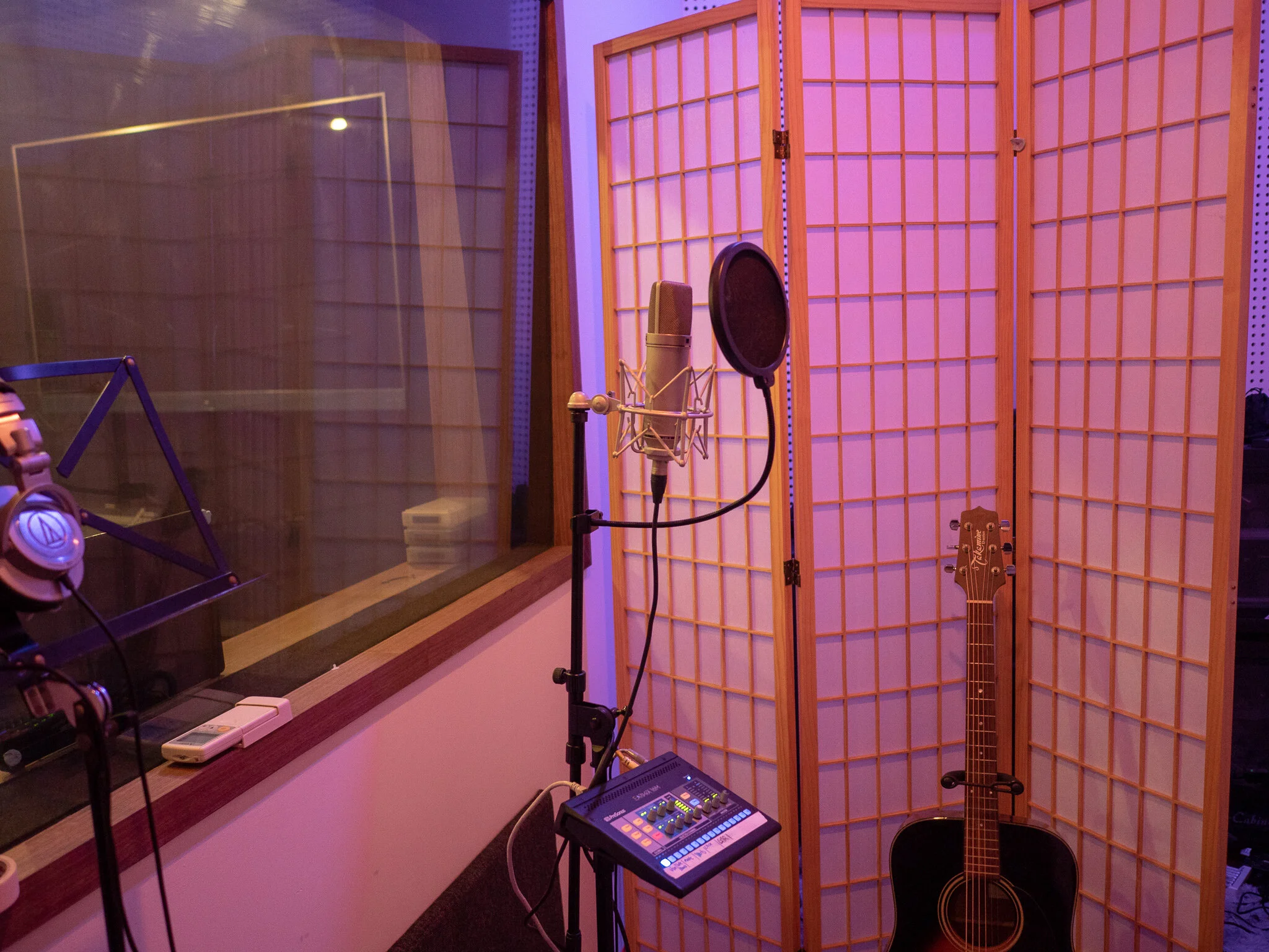 Our acoustically treated and soundproofed vocal booth is isolated from the control room and is perfect for recording vocals and acoustic instruments.